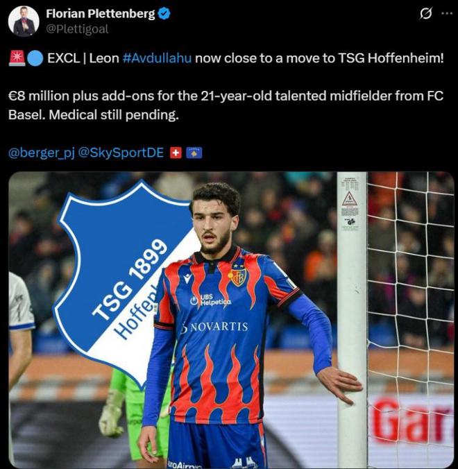 霍芬海姆簽瑞士中場(chǎng)阿夫杜拉胡,轉(zhuǎn)會(huì)費(fèi)800萬歐。