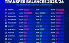 英超夏窗投入榜:槍手領(lǐng)跑,紅軍曼聯(lián)緊隨其后。