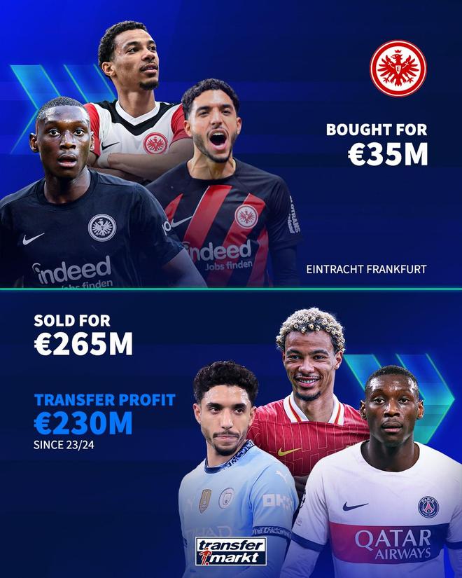 法蘭克福近年賣人賺4.28億歐,成本低至6500萬歐。